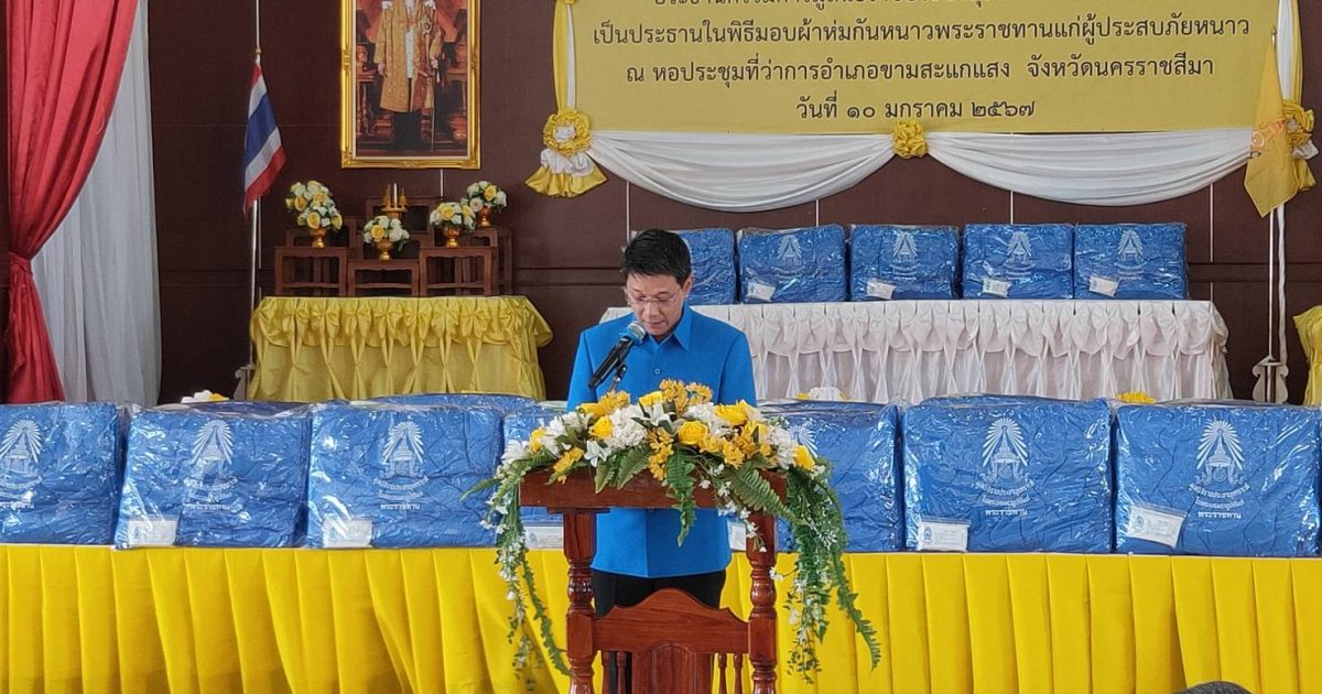 วันนี้ 10 ม.ค.67 เวลา 09.00 น. พ.ต.อ.ปรเมศร์ ตั้งจิตสมาธิ ผกก.สภ.ขามสะแกแสง พร้อมด้วย พ.ต.ต.สิปปวิชญ์ ปักกาโล สวป.ฯ ร่วมพิธีมอบผ้าห่มกันหนาวพระราชทาน แก่ประชาชนผู้ประสบภัยหนาว อำเภอขามสะแกแสง ณ.หอประชุมอำเภอขามสะแกแสง โดยมีผู้ว่าราชการจังหวัดนครราชสีมา เป็นประธานในพิธีมอบ